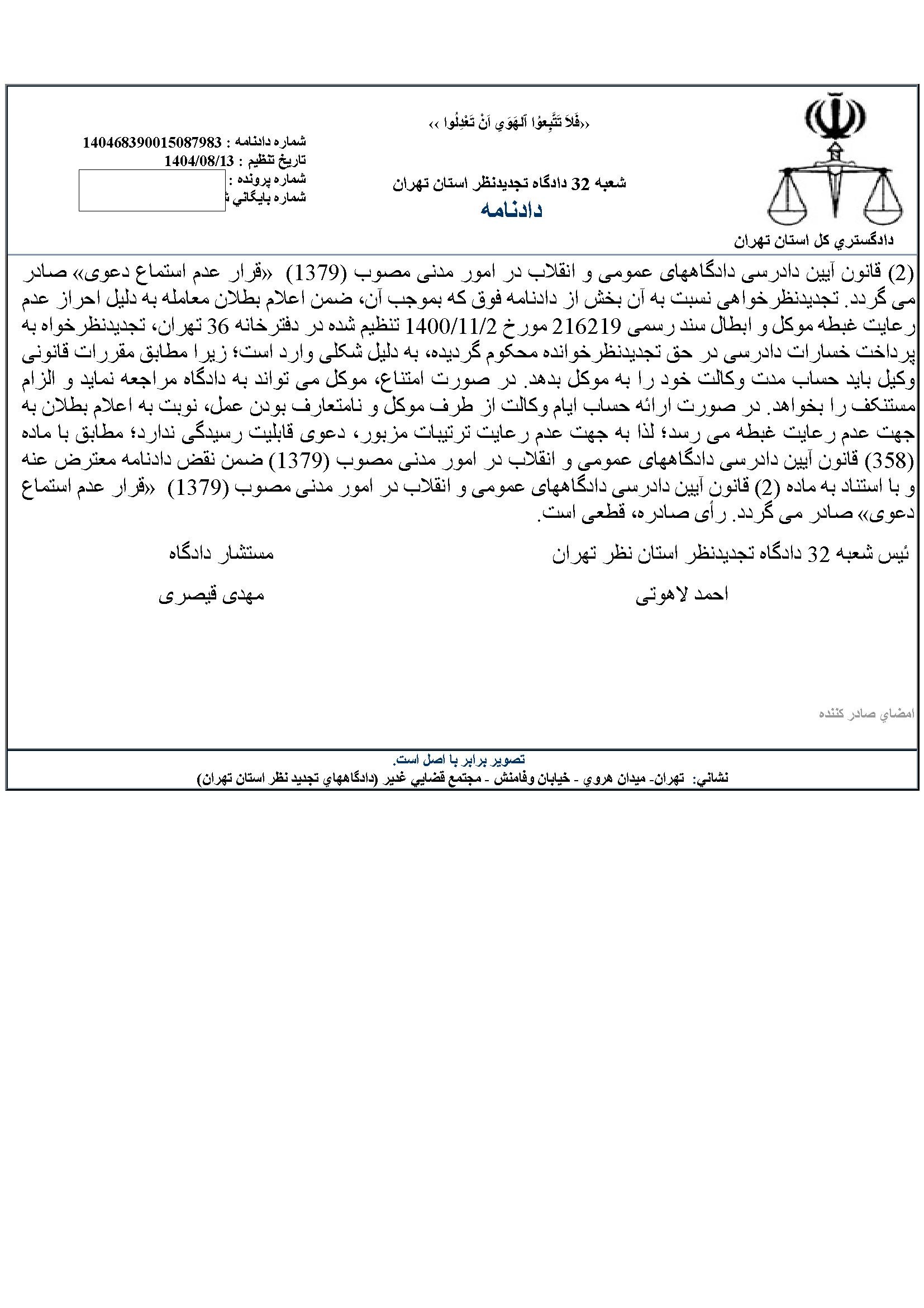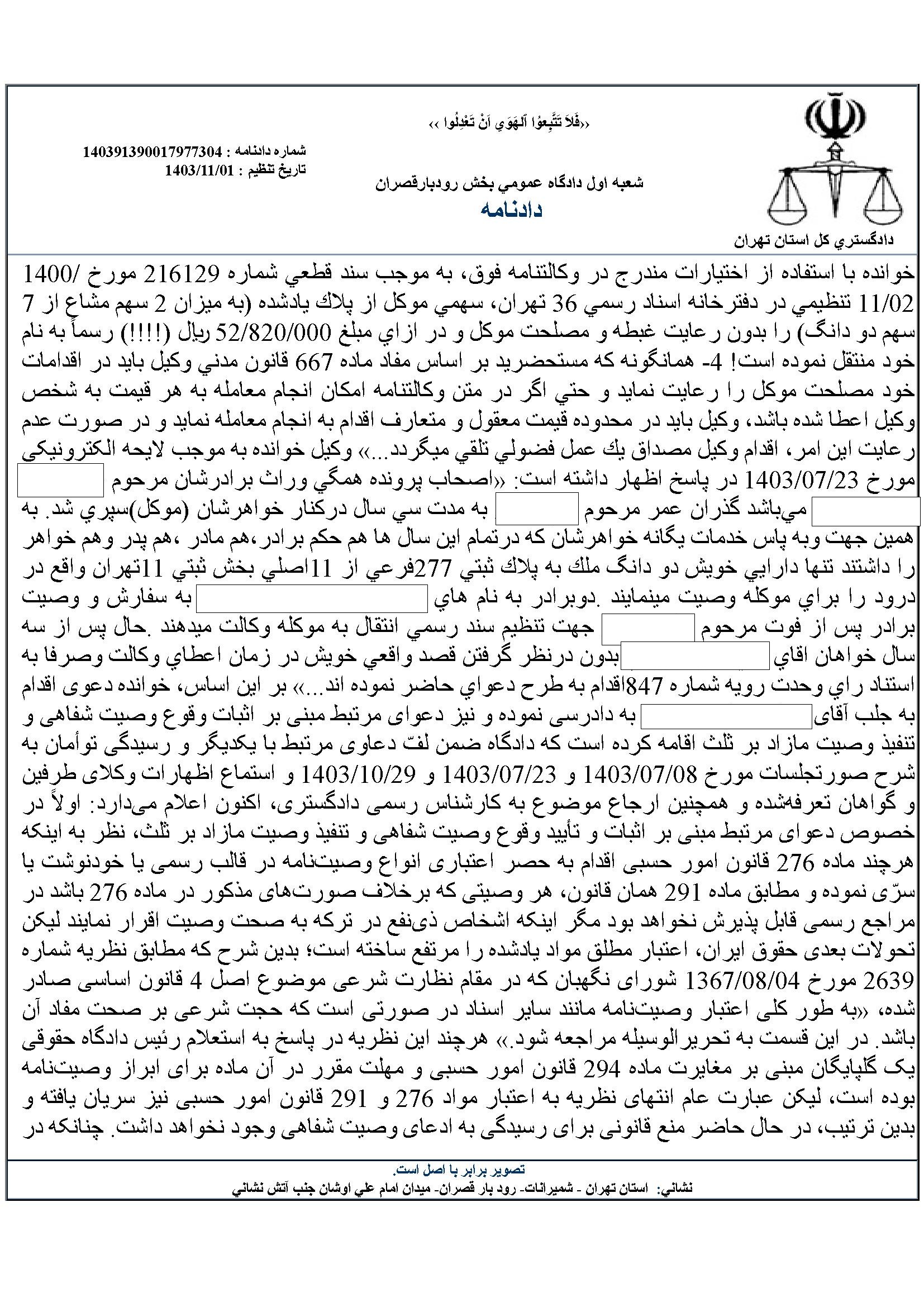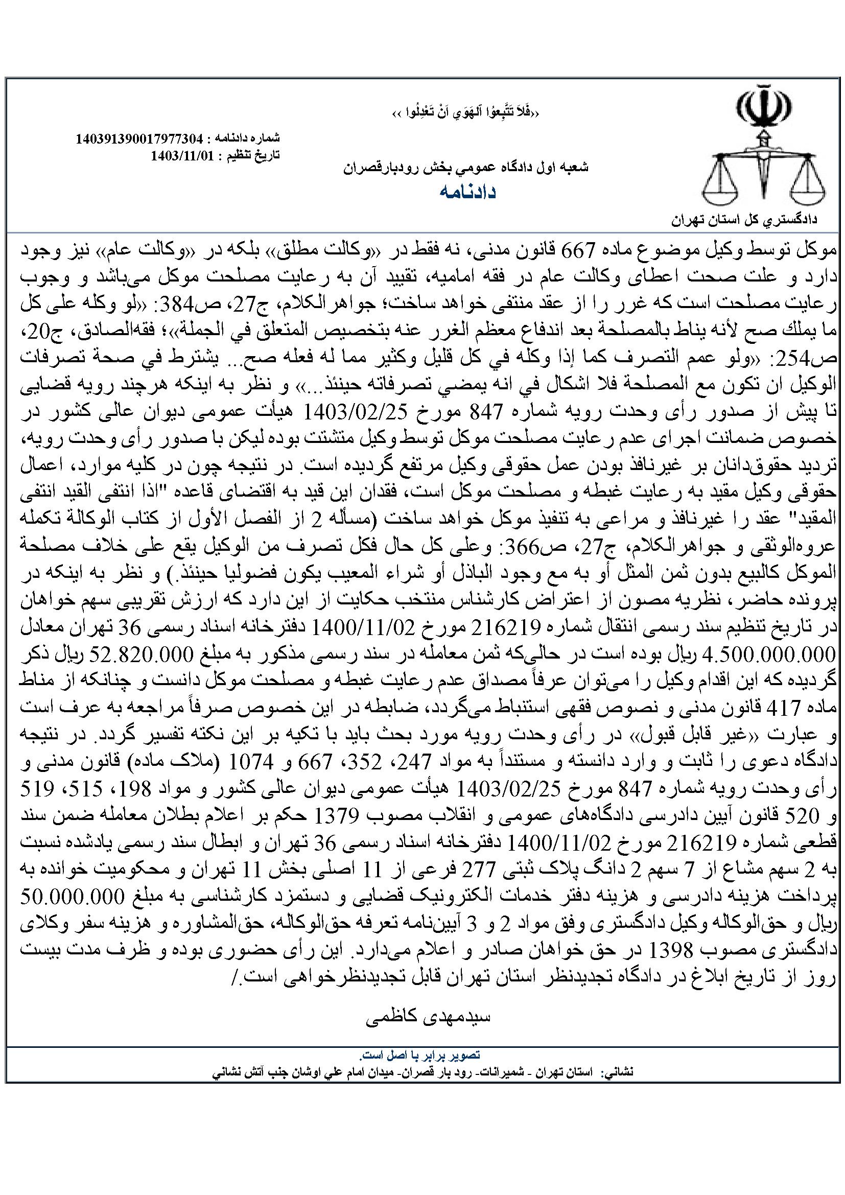 باز پس دادن حساب ایام تصدی وکالت